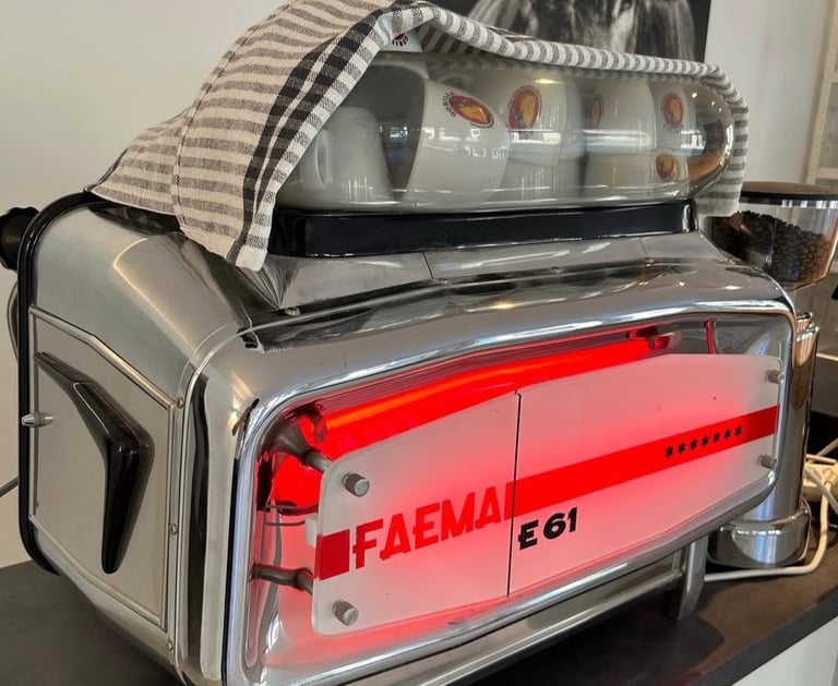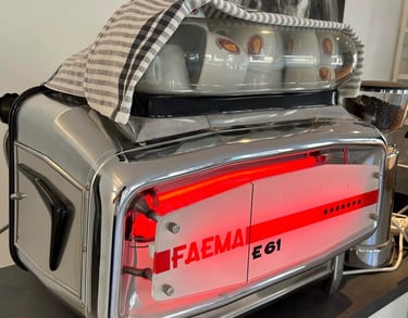 Unsere FAEMA E61, eine Ikone seit 1961. Sie steht für zeitlose Kaffeekultur und ermöglicht einen Espresso von besonderer Tiefe, feiner Crema und höchster Präzision.